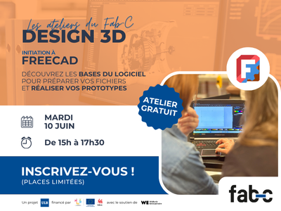 Inscription GRATUITE mais obligatoire via le formulaire https://www.billetweb.fr/initiation-a-freecad-2025